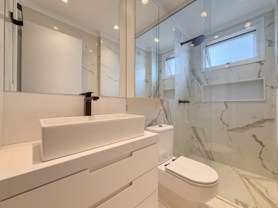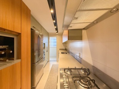 Apartamento mobiliado, equipado (eletros em inox, churrasqueira giratória, split na sala e suíte) e com box de garagem duplo.