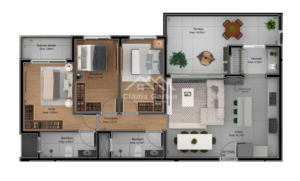 - Sacada aberta no living e na suíte