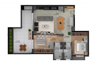 - Todos os apartamentos serão entregues com piso porcelanato no living/banheiros/sacadas e piso laminado dos dormitórios