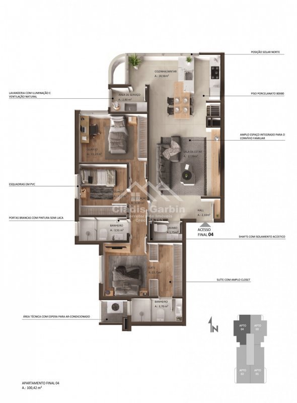 Área Privativa › 100,42m²