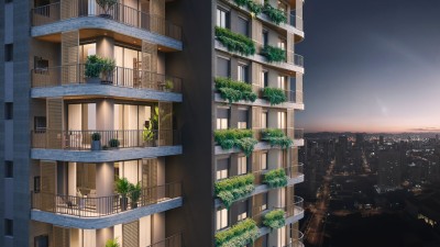 Integração com o verde: Floreiras autoirrigáveis espalham frescor, vida e beleza por todo o projeto, aproximando a natureza do dia a dia.