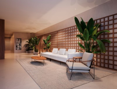 Integração com o verde: Floreiras autoirrigáveis espalham frescor, vida e beleza por todo o projeto, aproximando a natureza do dia a dia.