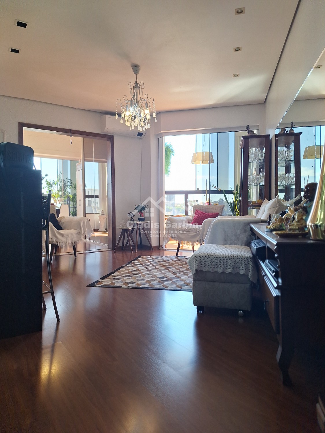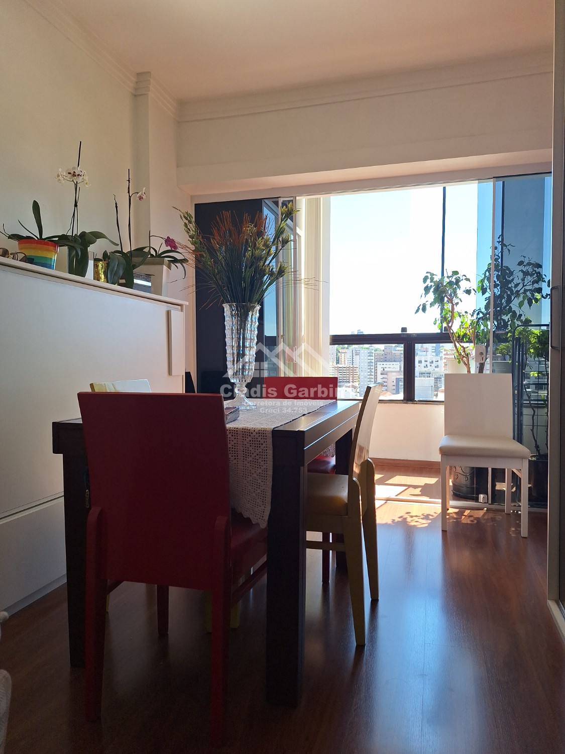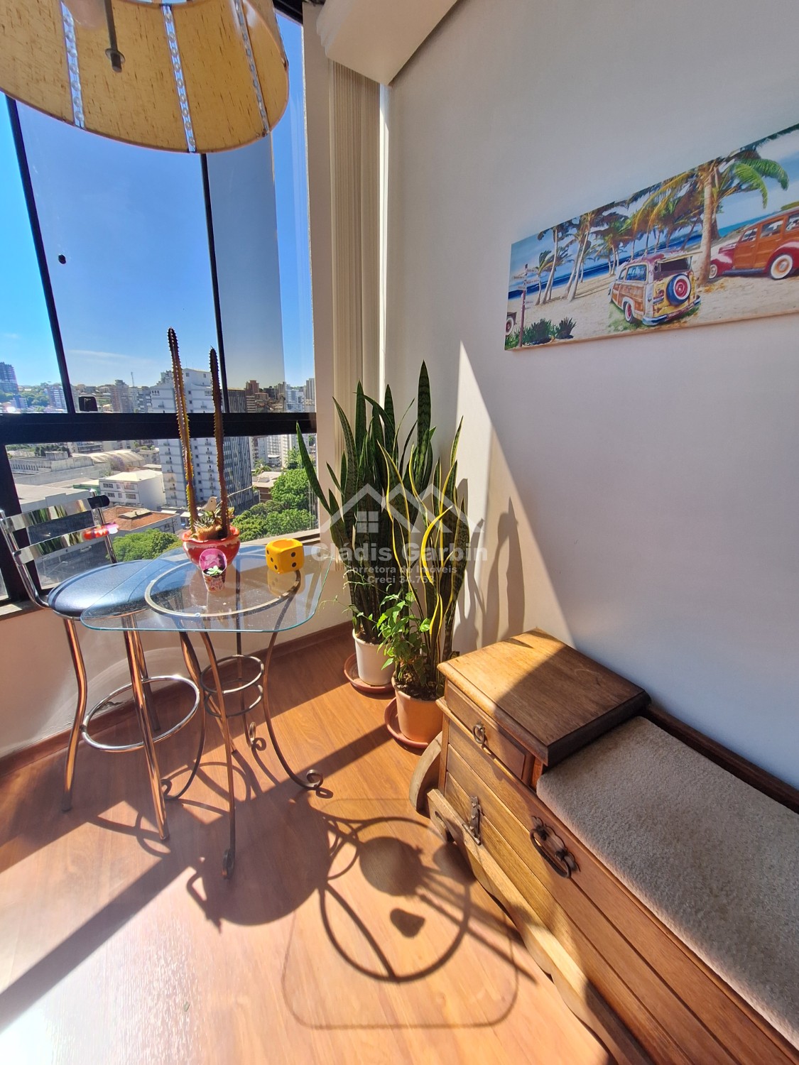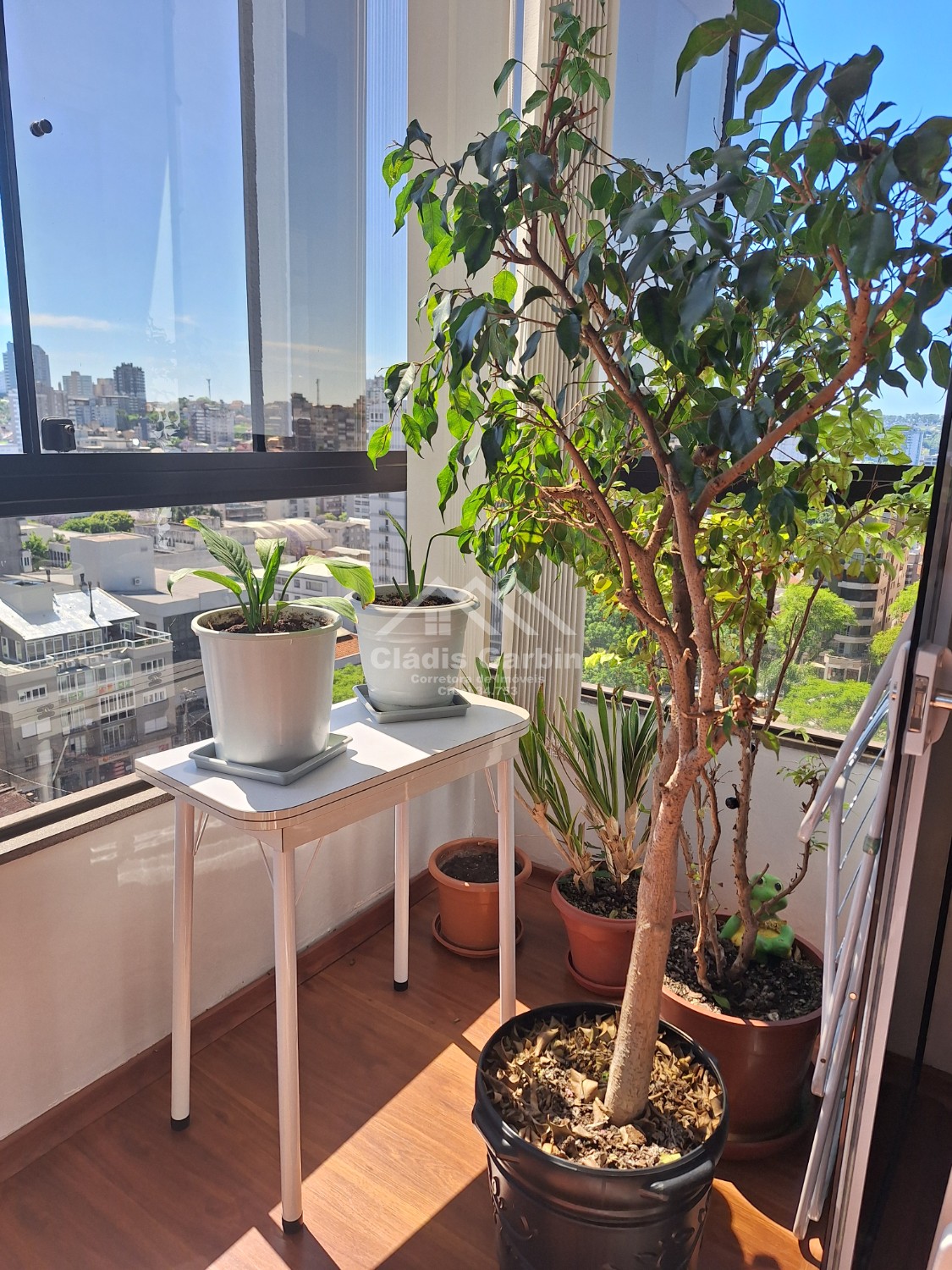 Andar alto, sol da tarde, ficam todos móveis fixos e alguns eletrodomésticos.