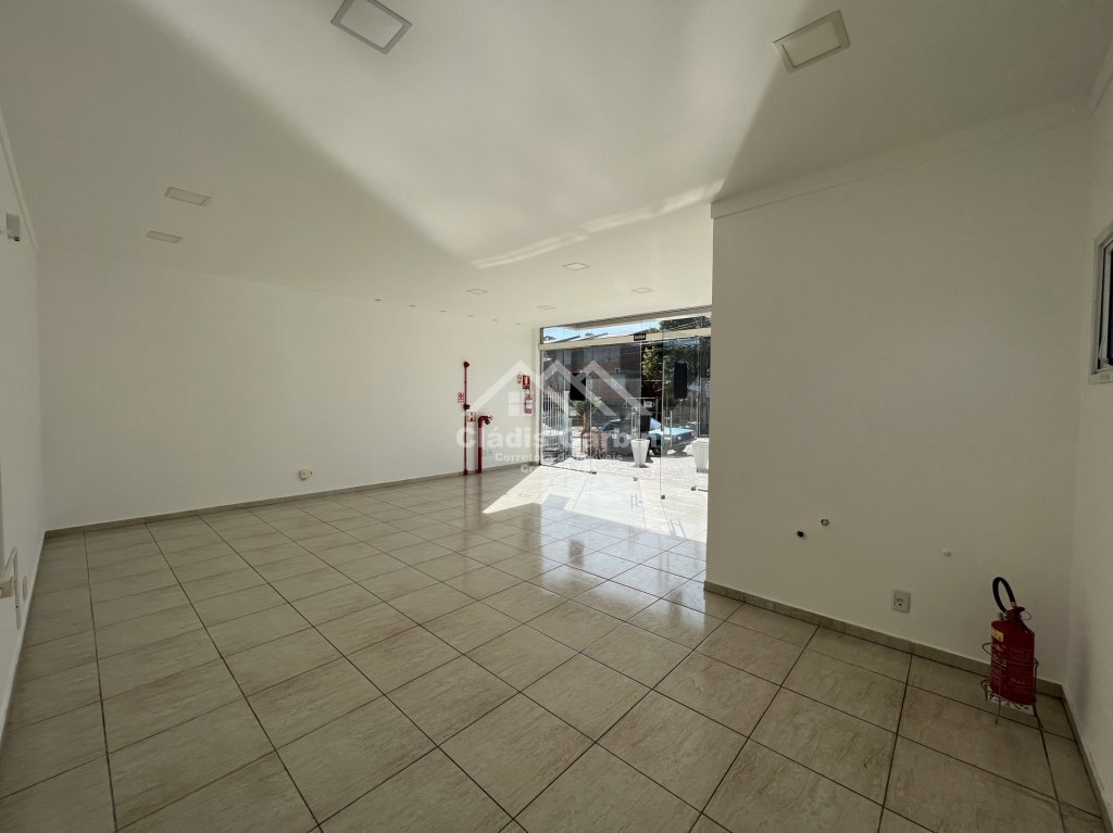 Descrição › SALA TÉRREA, possui 2 lavabos, ponto de água, gás, hidrante e extintores, com condomínio, sem garagem.